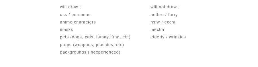- I am not responsible if my art style does not suit your character.